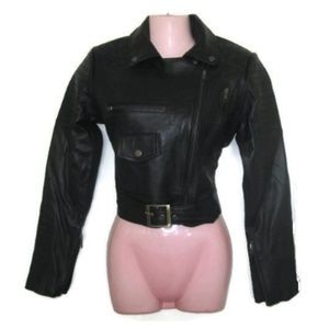 crop short sexy grunge vintage retro moto punk rock rocker rockstar rockabilly small cropped leather jacket crop black biker motorcycle coat size small medium 4 6 fitted bronze