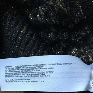 inspired by military attire. subtle metallic due to the dark primary color. thick knit that’s sure to keep you warm even on the chilliest days. grosgrain ribbon trim underneath snap closure at front. never worn. zero flaws.