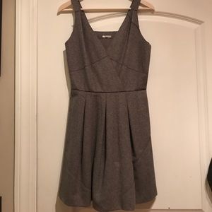 high quality, heavy weight wool flannel, makes this unusual a-line dress with wrap effect bodice perfect for winter! layer under a turtleneck for a classic and eye catching cold weather look. size 38 = xs