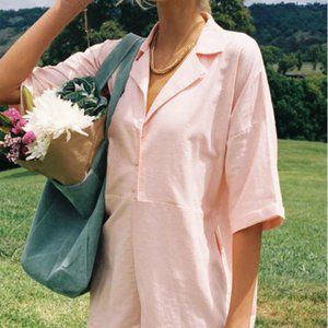 collared, functional buttons, side pockets; fits s-m due to sleeves