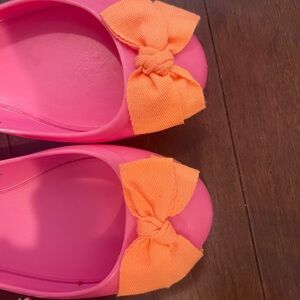 nwot/nwob J. Crew Factory Rainy Day Ballet Flats Pink & Orange jelly bow Flats 6