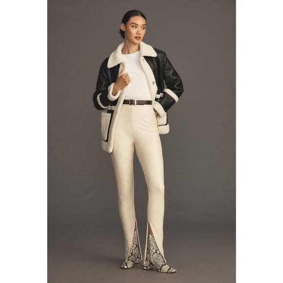 nwt ANTHROPOLOGIE Avec Les Filles sz L High-Waisted Faux Leather Slit Leggings