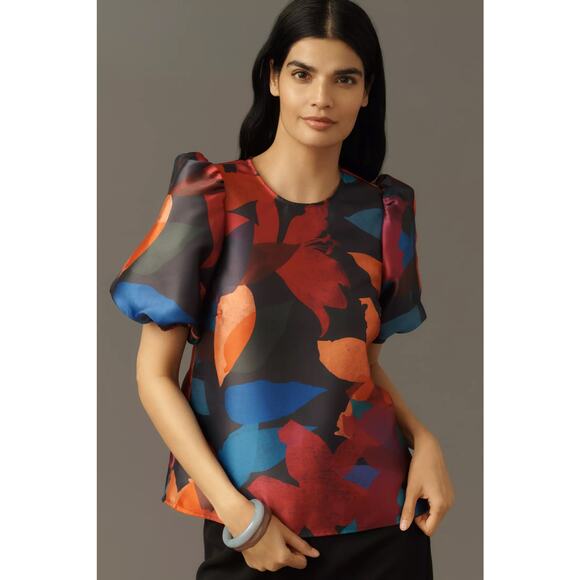 nwt ANTHROPOLOGIE HUTCH sz 2X Puff-Sleeve Printed Blouse