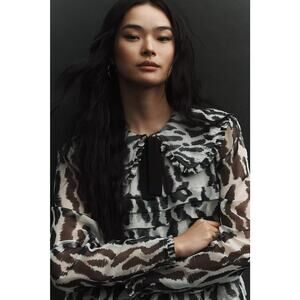 nwt ANTHROPOLOGIE MAEVE sz M Long Sleeve Collared Sheer Dress