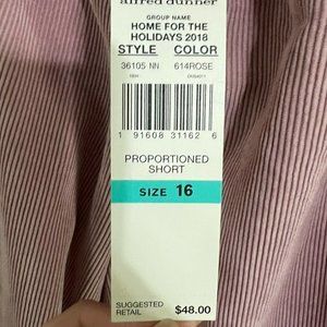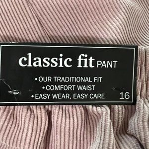 NWT Alfred Dunner Proportioned Short Classic Fit Cord/ Corduroy Pants Pink, Size 16. Please see measurements to determine fit.