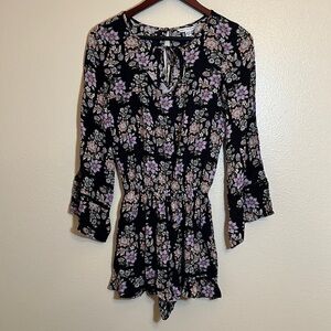 nwt American Eagle Outfitters Black Floral Long Sleeve Shorts Romper