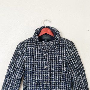 Ann Taylor Size XS XSmall Blue & Black Tweed Puffer Jacket Women's New