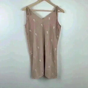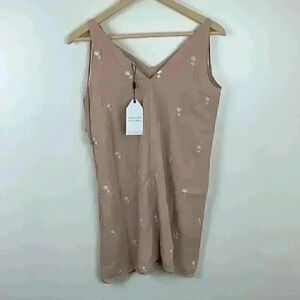 🆕NWT English Factory slip dress size M. V-neck front and back, side zip, adjustable shoulder straps. Tan with small white flowers. Super cute and ready for summer, or vacation! This item is new with tags. Please see photos for details and item condition.