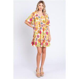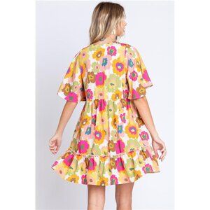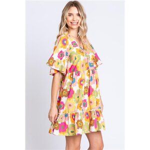 nwt GeeGee Full Size Floral V-Neck Ruffle Trim Mini Dress