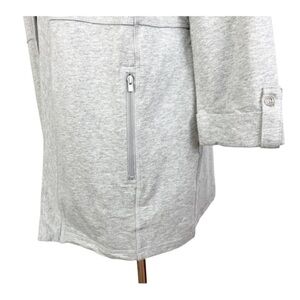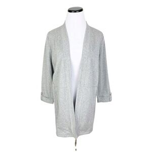 Brand new with tags. Features an open front, zip pockets, and 3/4 length sleeves.