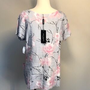 nwt LUCA VANUCCI Size L Grey and Pink Floral Linen Top