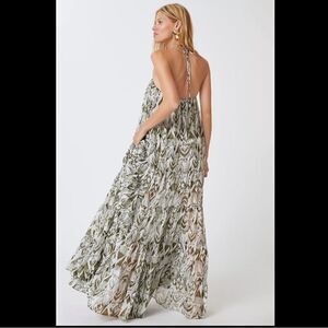 This gorgeous Andromeda dress from the new collection exudes bohemian sophistication. Featuring a figure-flattering halter neck with dramatic open back leading into a flowing tiered maxi skirt. Cut from a gorgeous olive green ikat print chiffon, this effortless style is a stunning standout perfect for this season and beyond...
