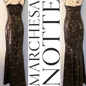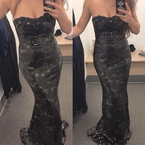 nwt Marchesa Notte Strapless Sequin Gown Formal Mermaid Dress Black Gold Size 2