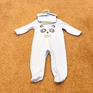 nwt Mon Cheri Baby 2 Piece Blue Coverall & Hat Set, size 3-6 months