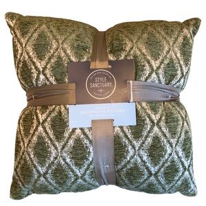 Style Sanctuary Set 2 Decorative Pillows Soft Woven Plush Aztec Green White 20 inch • Brand New with Tag | NWT | Minimal wear from store • See pics for details • Color may vary slightly due to lens, lighting or viewers screen settings