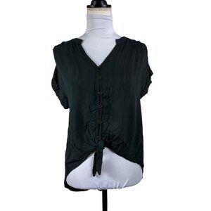 nwt Universal Thread Black Top Button Front Tie Front Short Sleeve size Small