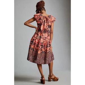 nwt by ANTHROPOLOGIE sz 14 Printed V-Neck Babydoll Dress in red motif