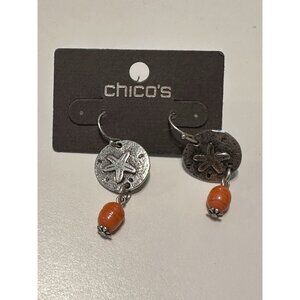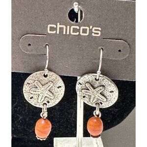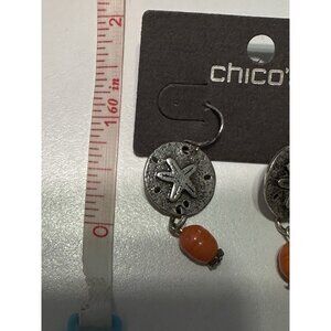 nwt chicos Silver Tone Sand Dollar Dangle Hook Earrings