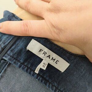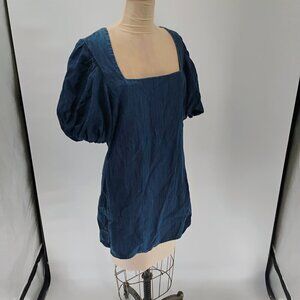 nwt frame nina puff sleeve blue denim dress womens extra large square neck mini