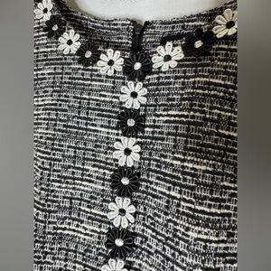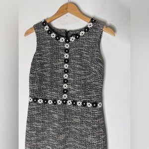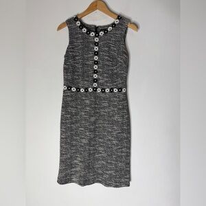 nwt karl lagerfeld Black And White Tweed Floral appliqué Detail Sheath Dress 4