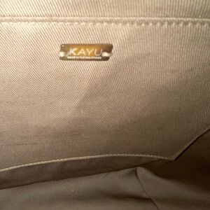 this is new with tags and has never been used. It has a drawstring with toggles which you can close the top with. there is also an interior pocket.