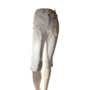 nwt white spandex poly viscose blend capri button fly 5 pocket jeans