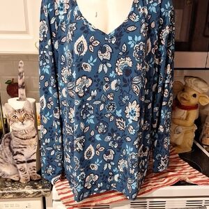 o Womens Jason Wu Floral Stretch Long Sleeve Plus Size Top 2X