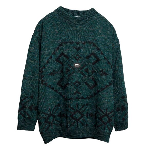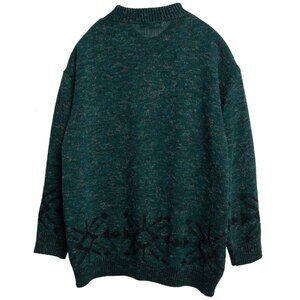 obermeyer (Germany) Intarsia Melange Wool 1x1 Rib Knit Studded Jumper Emerald