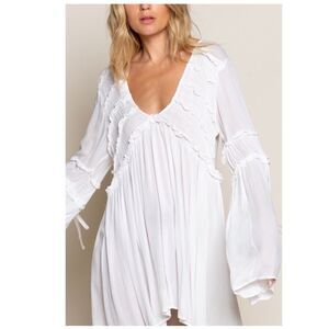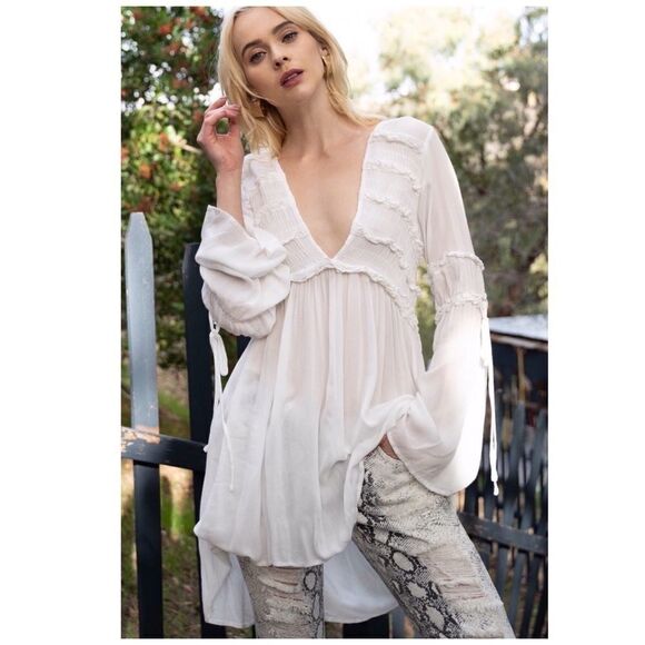 off White Tunic with Ruffle Detail & Bell Sleeves