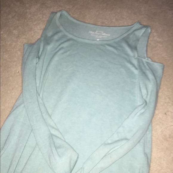 blue hollister shirt with shoulders out
