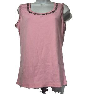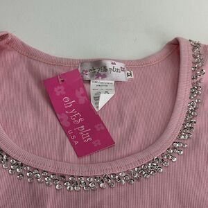 oh yes Plus USA Pink Clear Rhinestone beaded Collar tank top Size XL