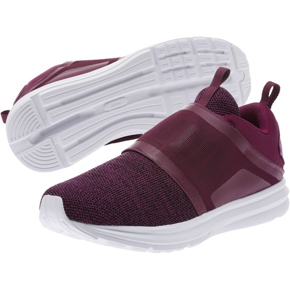 BRAND NEW PUMA strap knit dark purple shoes! Lace and Velcro shoes soft foam insert. Laces hidden under velcro straps, super comfortable plush feel! Never Worn!