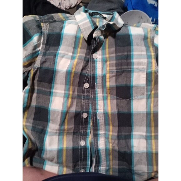 Designed to fit boys' size small, the shirt offers a smart and tailored silhouette. It's a piece that seamlessly blends the quality of Old Navy with the needs of the boys' department, ensuring a combination of durability and age-appropriate fashion. Whether it's for a day at school or a special event, this shirt is sure to impress.