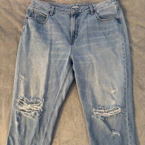 Trendy and comfy Old Navy cropped jeans in a light blue wash with ripped knees for a casual, laid-back look. These women’s size 16 jeans have a relaxed fit and soft denim that flatters every shape. A must-have plus size denim essential.