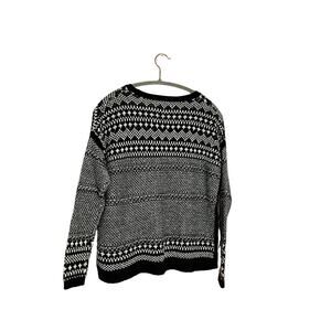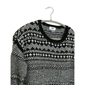 old navy women black white knit cotton jacquard sweater sz small crew neck
