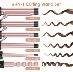 6-IN-1 Curling Iron, Professional Instant Heat Up Hair Curling Wand Set with 6 Interchangeable Ceramic Barrels (0.35'' to 1.25'') and 2 Temperature Adjustments, Heat Protective Glove & 2 Clips