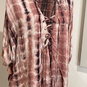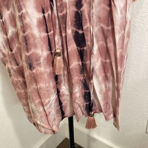 olivaceous tie dye coverup dress with lace front and tassles | size S | NWOT