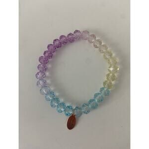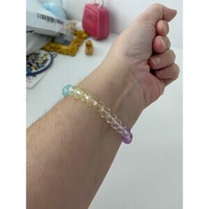 Stylish handmade pastel blue yellow and light purple glass bead bracelet ombré beads fits a medium wrist great for affordable bridal Spring Easter school work going out parties holidays gifting affordable bridal boho twee casual preppy rave cottage skater kidcore
