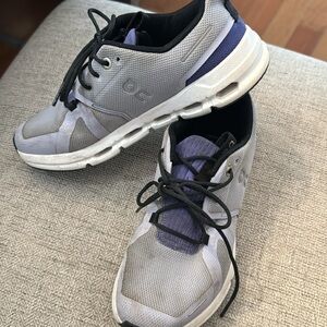 these sneakers are in good condition. They are a light lavender color with purple. just need to be washed , lightly worn