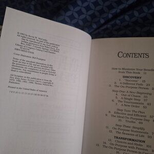 IS YOUR LIFE FILLED, YET UNFULFILLED? Do you feel pulled in a thousand different directions? Are your days and weeks so busy you hardly have time to think? Does your schedule seem totally out of control? Have you been trying to live up to everyone else's expectations while your own plans and dreams go unfulfilled? Then let The On-Purpose Person show you how to discover-and accomplish-what's most important to you! Tap into your highest potential with The On-Purpose Person! Nothing adds more fullness and meaning to life than discovering your purpose and living it out seven days a week! With The On-Purpose Person, you'll be on your way to discovering your life's purpose within half an hour of picking up the book! Presented in an entertaining story format, its principles are clear and easy to apply. You'll find yourself translating them into practice immediately-whether you're still in your teens or are well into retirement. "The simplicity and directness of this book really hit those of us who are striving for balance in our lives. Living the balanced "on-purpose" life requires the kind of structure and encouragement that are provided here."-Steve S. Reinemund, president and CEO, Pizza Hut "The secret of success is: Do more of what you're good at and less of what you're not good at. That's what The On-Purpose Person is all about."-Stanley C. Olsen, cofounder, Digital Equipment C