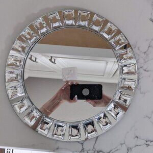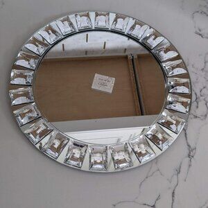one 13" Round Mirror glass Charger Plate CrystalRim Wedding Jewelry Serving Tray