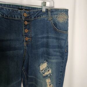 one 5 one Distressed Button Fly Jeans High Rise Stretch Womens Plus Size 20W