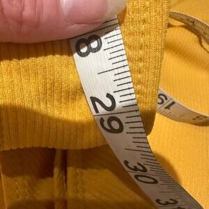 This mustard yellow one-piece swimsuit is perfect for swimming. It's in great condition and ready for a new home.