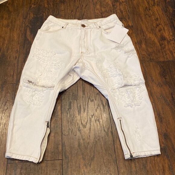 one x one teaspoon cropped white distressed jeans size 25 NWT