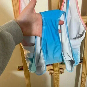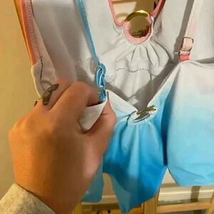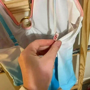 Cute one piece adjustable straps, has some thread in the strap that’s gone as seen in pictures. Padded top.