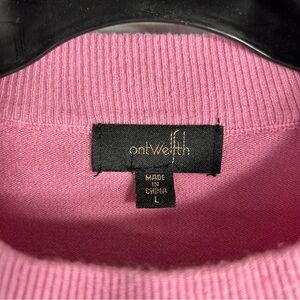 ontwelfth Floral Lace Puff Sleeve Ribbed Knit Short Sleeve Cotton Sweater Sz L