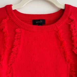 ontwelfth Red Fringey Sweater, Bright Red Knit Crewneck Sweater, Size Medium