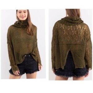 open Weave Turtleneck Sweater In Olive