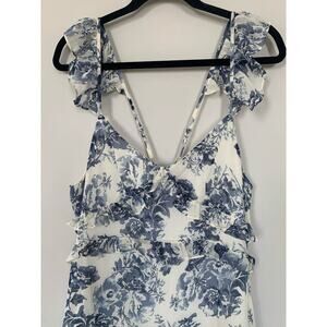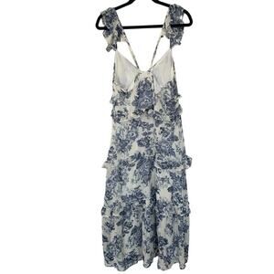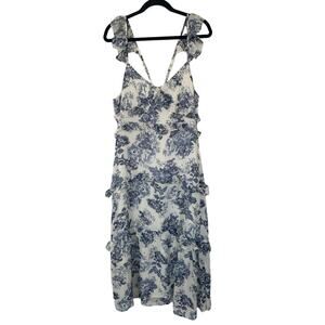 o.p.t Blue & White Ingrid Floral Ruffle Tiered Midi Dress Size Large