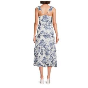 NWT o.p.t Blue & White Ingrid Floral Ruffle Tiered Midi Dress Size Large